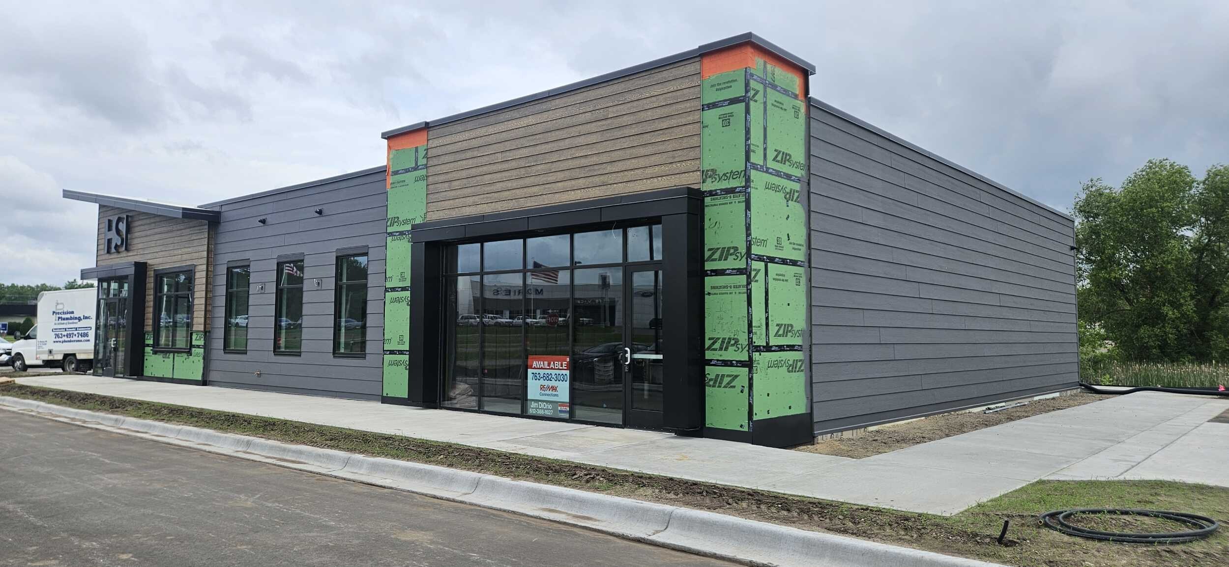 We installed siding and trim on this brand new HealthSource Chiropractic building in Buffalo, MN. The combination of LP steel panels and Woodtone lap siding give this building a modern look.